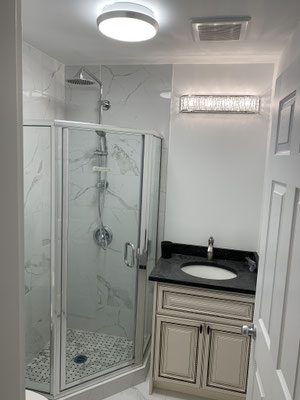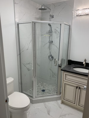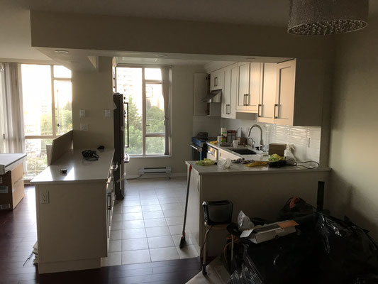 Project @ xxx-xxxx Hazel St, Burnaby, Spring 2018, Removing two non-bearing walls to renovate an open-concept kitchen, and Renovating two washrooms for a unit in a condo